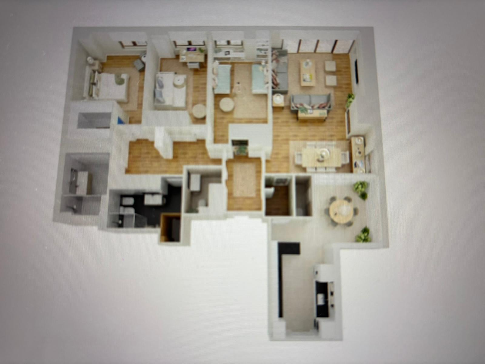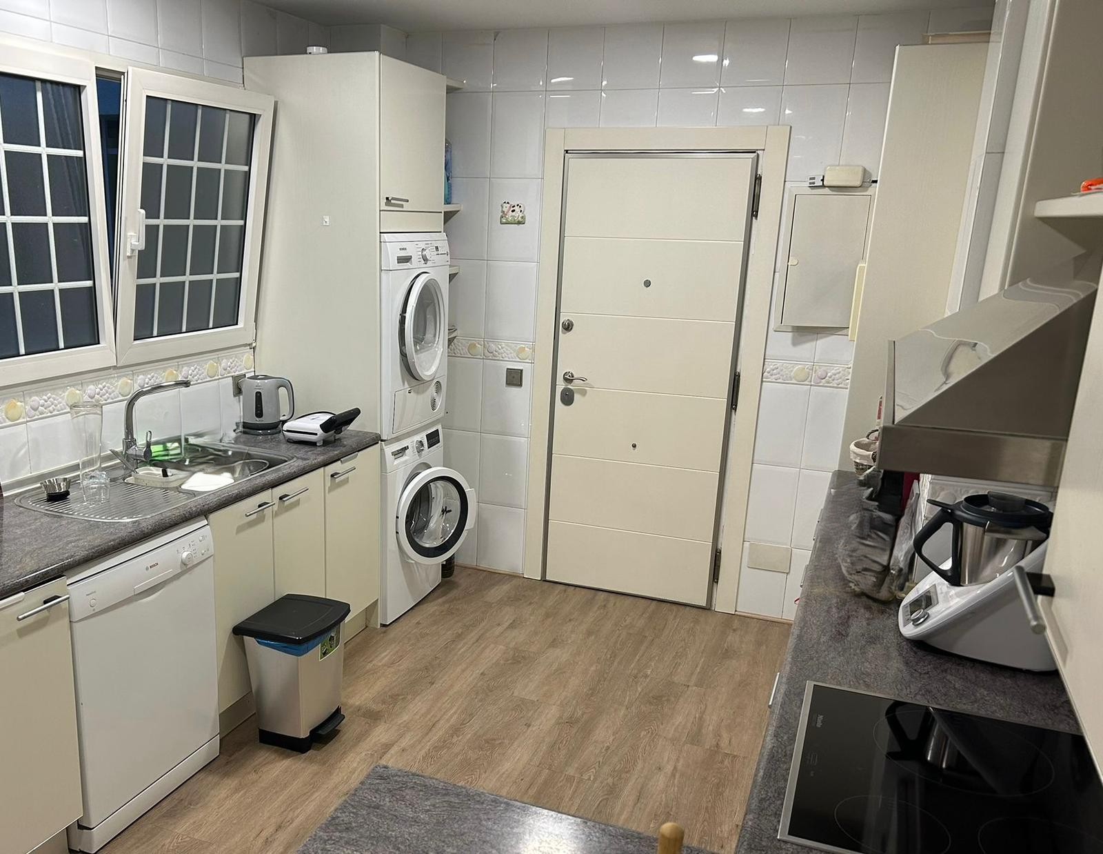 The kitchen is fully equipped, and the home comes unfurnished, ready to be customized to your liking. It features built-in wardrobes, individual heating, and air conditioning, ensuring maximum comfort year-round.
