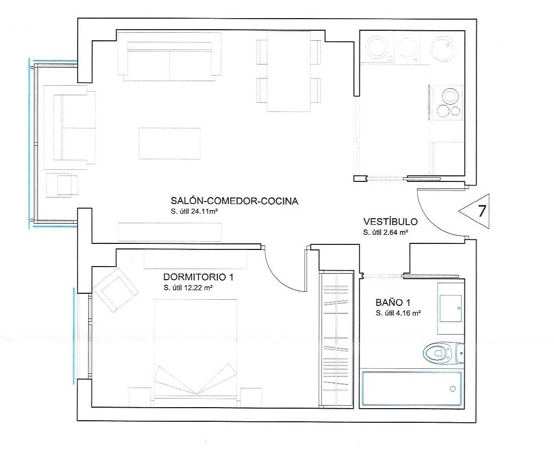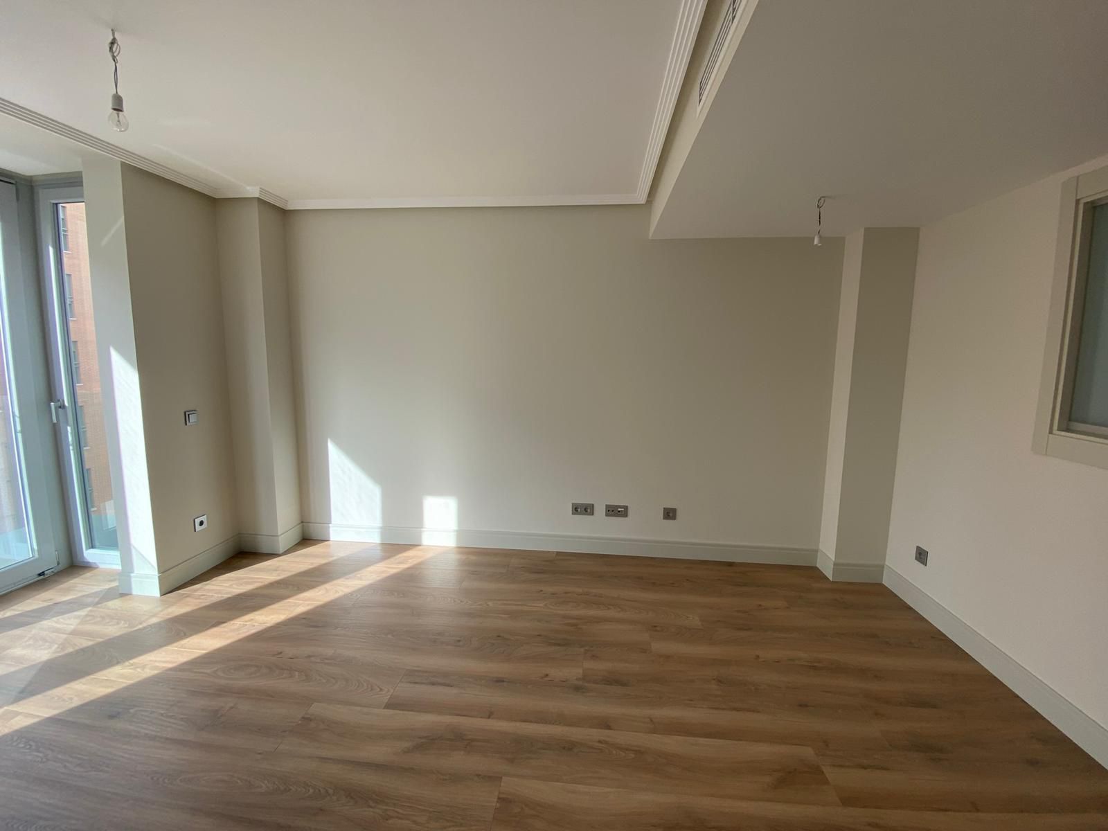 Bostaden har ett ljust vardagsrum med ett öppet kök, fullt utrustat med högklassiga vitvaror: ugn, induktionshäll, köksfläkt, diskmaskin, tvättmaskin/torktumlare, mikrovågsugn och kylskåp.