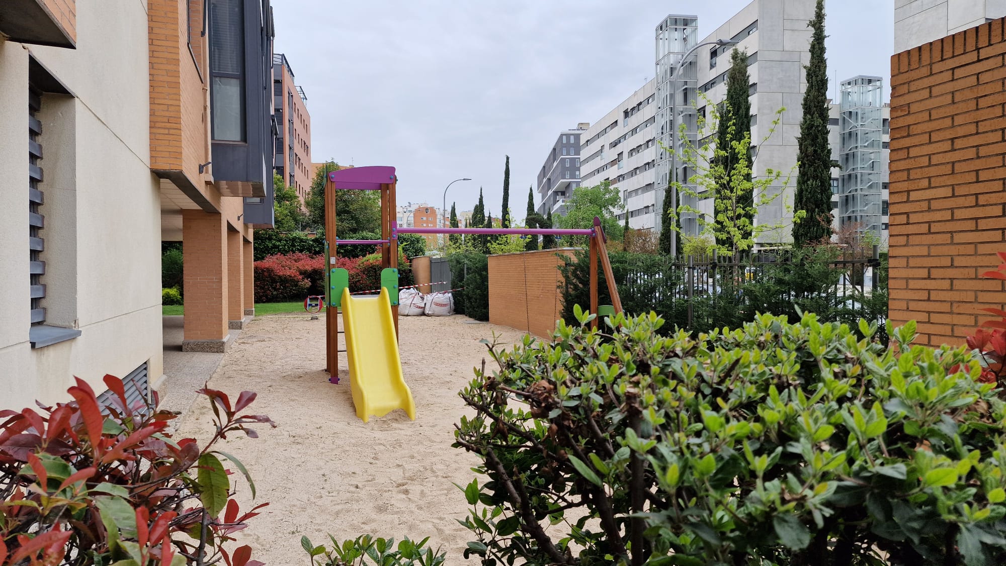 LAS ENCINAS PROPERTIES erbjuder denna exteriöra lägenhet i utmärkt skick belägen i ett utmärkt område i Sanchinarro. Den ligger i ett gated community med concierge-service, en utomhuspool, trädgårdsområden och en lekplats, perfekt för familjer eller de som uppskattar en lugn och välskött miljö.